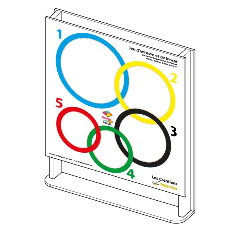 Une tablette de récupération se trouve sur la partie basse du panneau. Le jeu de lancer est idéal pour la réalisation d’activités de précision et pour des moments récréatifs.