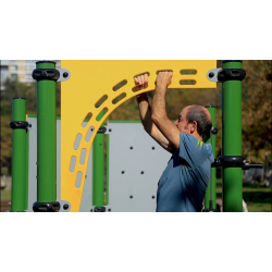 L’Espalier pour bras SPK03 est un panneau de polyéthylène ajouré à deux niveaux d’accroche. Ce module est destiné à faire travailler la mobilité des bras, de bas en haut et au dessus de la tête. L’objectif est de rendre d’avantage de souplesse aux articulations de l’épaule et du dos. Il permet aussi de simuler l’action de se coiffer.