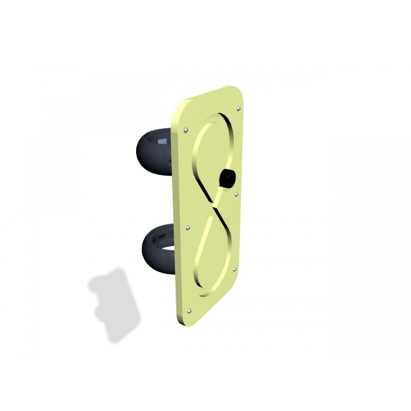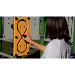 Le module Mouvement en 8 est un panneau de polyéthylène (poteau en option) avec canal rainuré par lequel peut circuler une pièce mobile dans un circuit sous forme de huit. Ceci permet le travail combiné des bras, des mains, des poignets et des doigts.