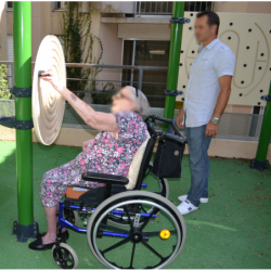 Réaliser des étirements des bras en faisant tourner le cercle pour que la bille parcoure toute la spirale, d’abord dans un sens, puis dans l’autre. Réaliser cet exercice, d’abord avec un bras puis l’autre.