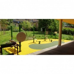Le module SPK06M est une roue en polyéthylène à fixation murale, avec un circuit rainuré permettant à une bille de circuler de l’une de ses extrémités à l’autre. La bille offre une stimulation visuelle.