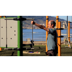Le module SPK07 est composé d’une barre en inox située entre deux supports. Une pièce mobile se déplace de bas en haut le long de cette dernière. Déplacer la pièce mobile le long des axes de haut en bas et de bas en haut de façon à assouplir les articulations des épaules, bras et poignets.