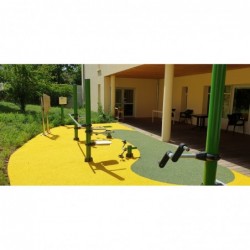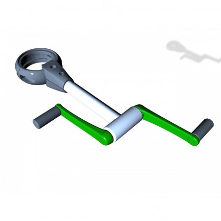Le module SPK09S (poteau en option) permet de réaliser des mouvements circulaires verticaux des bras. La Manivelle à Axe Horizontal peut combiner plusieurs exercices. La hauteur d’installation de la manivelle est réglable lors de la fixation initiale et peut convenir aux usagers en fauteuil.