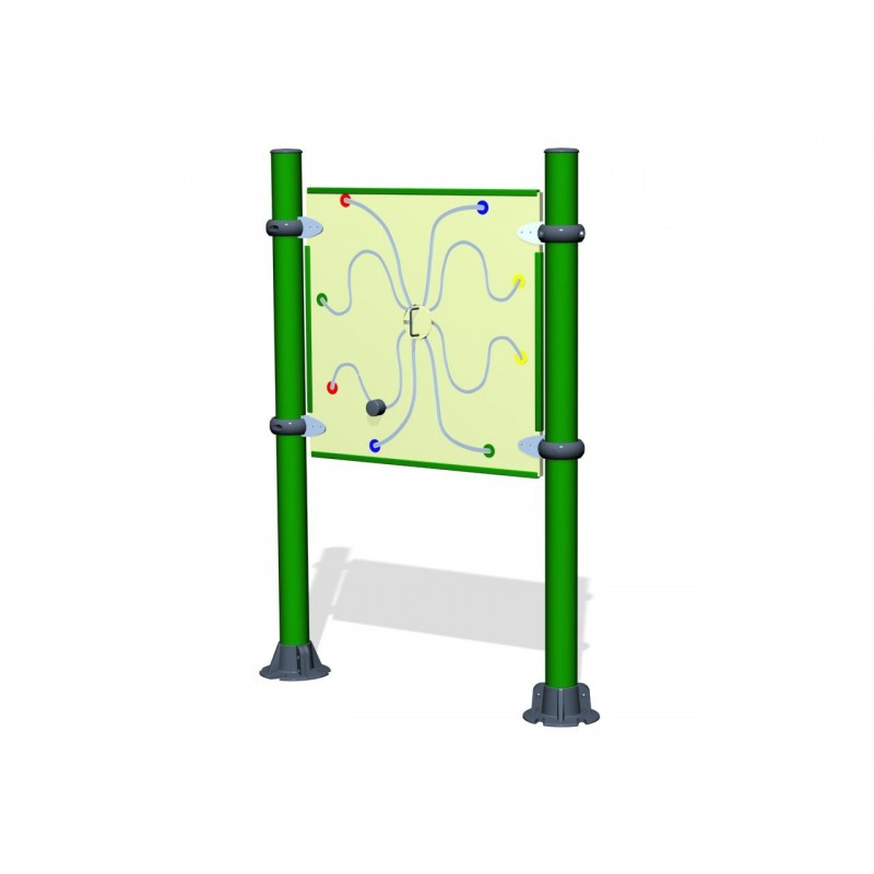 Ce parcours stimule les mouvements, l’amplitude des bras, la souplesse des poignets, la posture du dos, des bras et des épaules. La partie centrale permet de réaliser un mouvement rotatif du poignet afin de faire cheminer le palet d’un canal à un autre. La concentration et la motiricité fine de l’usager sont également sollicitées.