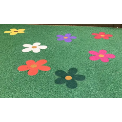 Les couleurs UV sont moins sensibles aux changements de teinte dus aux rayons UV. Les graphiques sont réalisés en granulés en EPDM et certifiés pour la sécurité sanitaire.