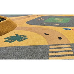 Les couleurs UV sont moins sensibles aux changements de teinte dus aux rayons UV. Les graphiques sont réalisés en granulés en EPDM et certifiés pour la sécurité sanitaire.