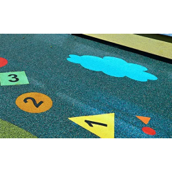 Les couleurs UV sont moins sensibles aux changements de teinte dus aux rayons UV. Les graphiques sont réalisés en granulés en EPDM et certifiés pour la sécurité sanitaire.