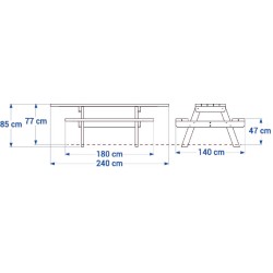 Table de pique nique PMR longueur 240cm x 140 de largeur, de hauteur de plateau de 77 cm et d'assises de 44 cm