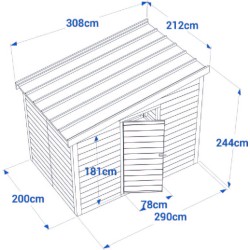 Dimensions hors tout 2,12x3,08m, hauteur 2,44m