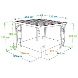 Dimensions hors-tout 365 x 312 cm, hauteur 255 cm