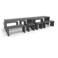 Une gamme moderne et urbaine en plastique recyclé. Idéale pour les parcs comme en ville, pour un moment de détente conviviale. Associez la table de pique-nique avec différentes banquettes et tabourets afin de créer des espaces adaptés aux PMR.