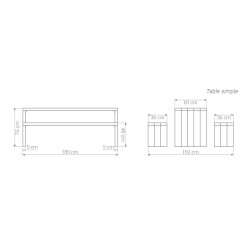 - longueur 180 cm réf. 49.1 Assise composée de lattes de section 5x12 cm, renforcées pour la longueur 180 cm.