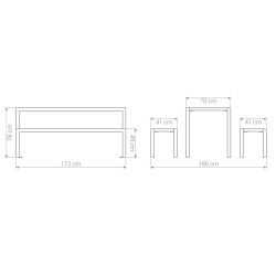 Hauteur d'assise 45 cm, largeur 41 cm x longueur 172 cm