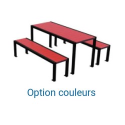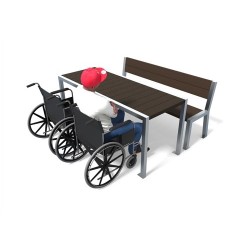 La table peut être utilisée également par 2 fauteuils roulants sur le grand coté à la place d'un banc ou d'une banquette.