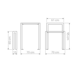 Piètement en acier section 5 x 5 cm, finition laquée RAL 7016 ou 9005 au choix (autres RAL en option)