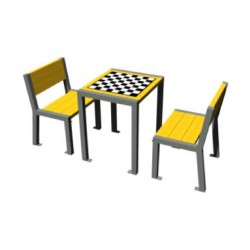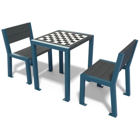 Appartenant à la gamme ref 43, la table de jeu allie le plastique recyclé et le métal, s’intégrant parfaitement dans les environnements urbains. Avec 4 plaques de jeu différentes disponibles, elle crée un point de rencontre ludique dans l’espace public. Elle peut s’accompagner, au choix, des chaises ou des fauteuils ref 43