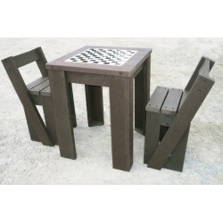 Plus de jeu, plus de rencontre. La table peut se décliner sur différents jeux : dames, échecs, petits chevaux, jeu de l’oie … Elle favorise le lien social dans la ville, et toujours en 100% plastique recyclé. Vous avez ensuite le choix entre des chaises hautes ou des tabourets...
