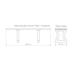 La table peut être utilisée également avec un banc ou une banquette de chaque coté