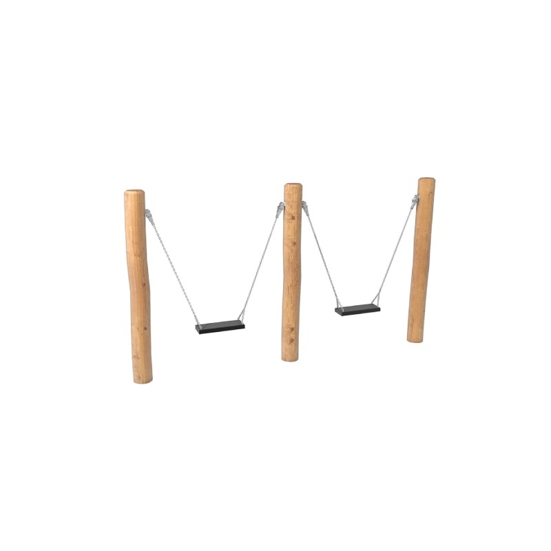 Balançoire double avec Poteaux en Robinier : poteaux de section circulaire en Robinier de grande résistance et durabilité.