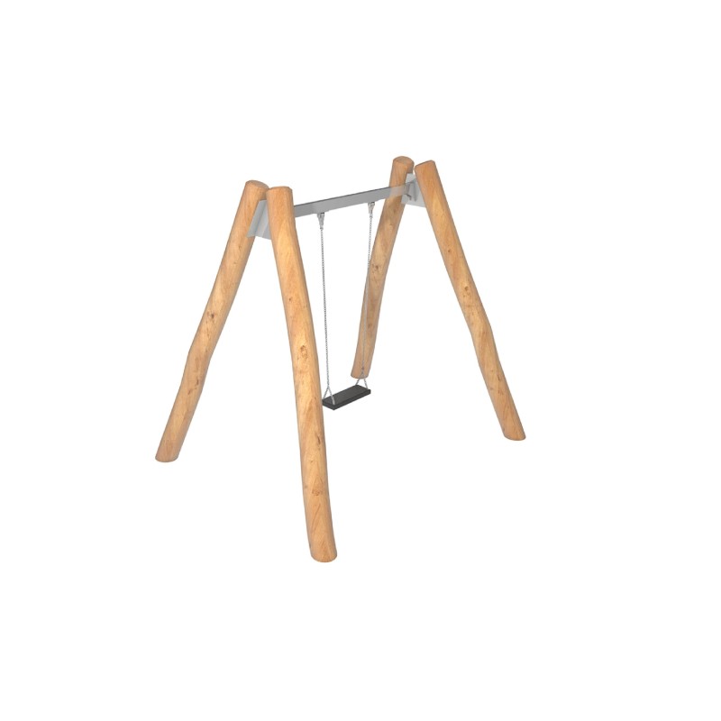 Balançoire simple avec Poteaux en Robinier : poteaux de section circulaire en Robinier de grande résistance et durabilité.