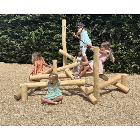 Petite structure de grimpe et d'équilibre pour enfants. Une structure pour les enfants de 4 à 12 ans, construit en robinier.