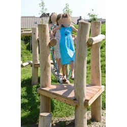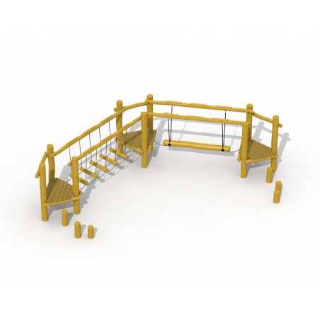 Le jeu est composé de 3 plates-formes. On peut atteindre les deux plates-formes aux extrémités par 3 pas-de-géants. Le plancher des plates-formes est fait en mélèze, le reste est fait en robinier. Les plates-formes sont reliées par un pont souple et un poteau qui plane à des cordes. Les poutres du pont souple sont reliées l’une à l’autre et aux rampes par des chaînes galvanisées. Le poteau qui plane est attaché aux rampes par 4 cordes en câble d’acier. Le poteau est aussi attaché aux plates-formes avec 2 chaînes galvanisées.