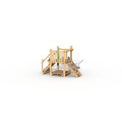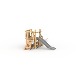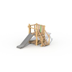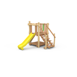 Tour sans toit, fabriqué en robinier et mélèze. Les parties colorées attirent l’attention des enfants. Ce jeu a un toboggan en inox, une plate-forme qui peut être atteint par un escalier et une plate-forme en bas où les enfants peuvent se cacher. Ce jeu a été spécialement conçu pour les plus petits.