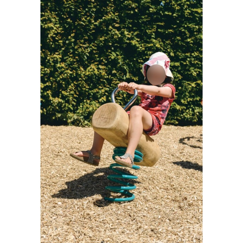 Jeu à ressort pour les enfants de 2 jusqu’à 6 ans. Le jeu est composé d’un ressort en métal en polyester coating qui est fixé sur une surface galvanisée. Au-dessus il y a un siège en forme de tronc. La figure est entièrement conçue en robinier. Le ressort est fait d’un acier spécial de 20 mm, la poignée est en inox.