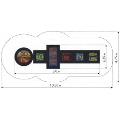 Trampoline avec zones de sauts respectifs de 0,75m x 0,75m + 0,75 x 1,75 m + ø1,25 m