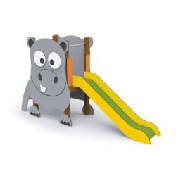 Une structure de jeu pour les enfants de moins de 5 ans. Un petit toboggan thématique pour les plaisirs de glisse en forme de Hippopotame