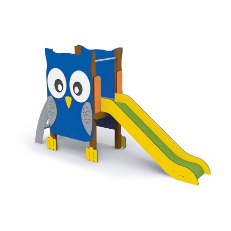 Une structure de jeu pour les enfants de moins de 5 ans. Un petit toboggan thématique pour les plaisirs de glisse en forme de Hibou