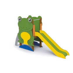 Une structure de jeu pour les enfants de moins de 5 ans. Un petit toboggan thématique pour les plaisirs de glisse en forme de Grenouille