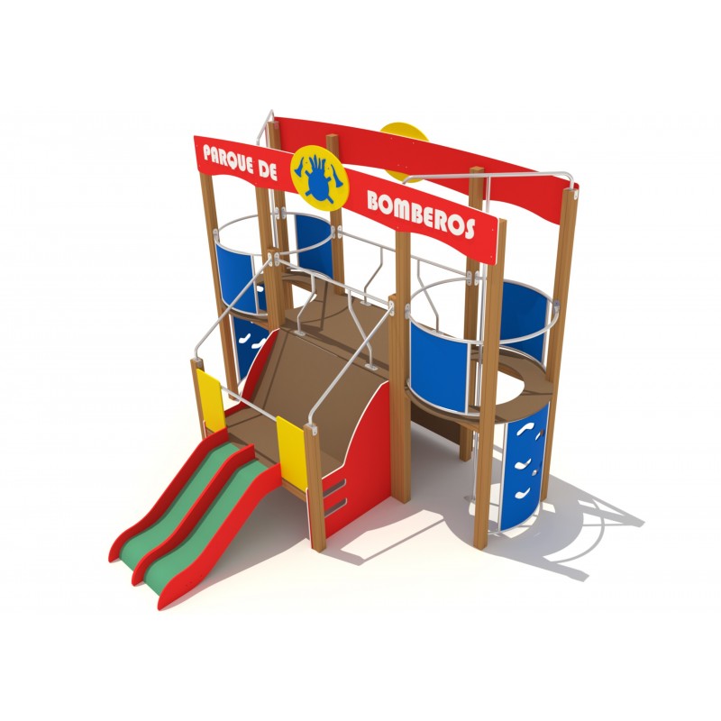 Sur tous les aéroports. il y a une caserne de pompiers. Cette très belle création ravira les enfants qui pourront faire des jeux de parcours afin de combiner agilité et rapidité. L’objectif est d’accéder à la passerelle en utilisant les panneaux perforés verticaux pour ensuite descendre soit par la rampe inclinée qui donne accès au 2 toboggans. soit en faisant comme les pompiers en se laissant glisser le long des 2 mâts situés au milieu des tours.