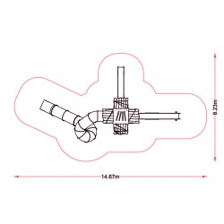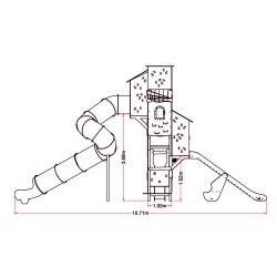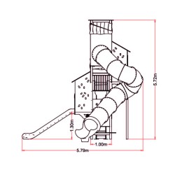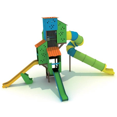 Complexe composé d'une grande tour à laquelle sont suspendues quatre autres tours. L'accès se fait par un circuit qui passe par les différentes tours, en prenant de plus en plus de hauteur, jusqu'à atteindre le toboggan du tube de sortie, situé à 3,70 mètres. Le parcours est jalonné d'un toboggan de 1,30 mètre et d'un autre de 1,90 mètre.