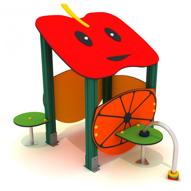 Petite structure “fruits” très rigolote pour le repos et les rencontres. Les enfants peuvent s’abriter sous le toit pour se raconter des histoires. Ils disposent également d'un jeu avec des anneaux pour se distraire.