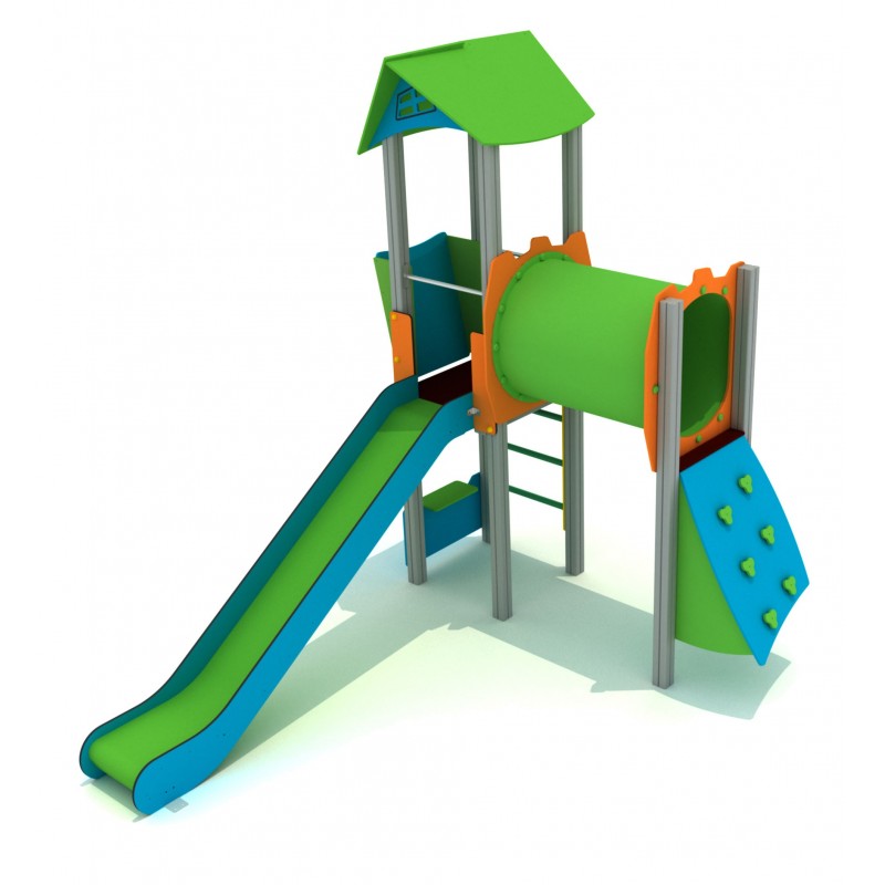 Cette structure combine les activités de grimpe, de glisse et les enfants peuvent ramper dans le tunnel.