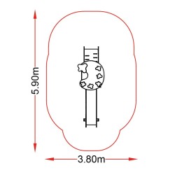 Tour ludique des artistes peintres. très compacte avec son toboggan. L'accès à la plateforme se fait par un pan perforé incliné. Après avoir fait la photo en passant la tête dans le panneau ludique. les enfants pourront se laisser glisser sur le toboggan.