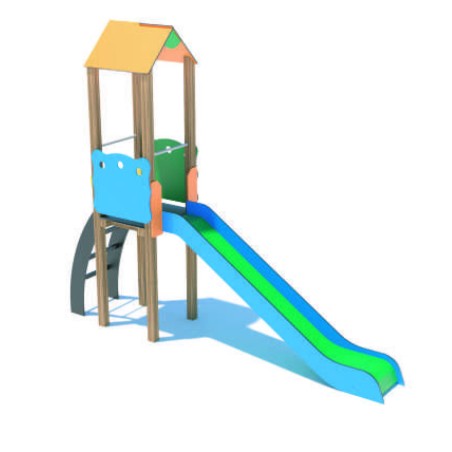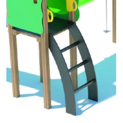 Structure de jeu avec une tour et un toboggan. L'accès se fait par un nouvel escalier plus pratique et plus esthétique