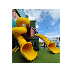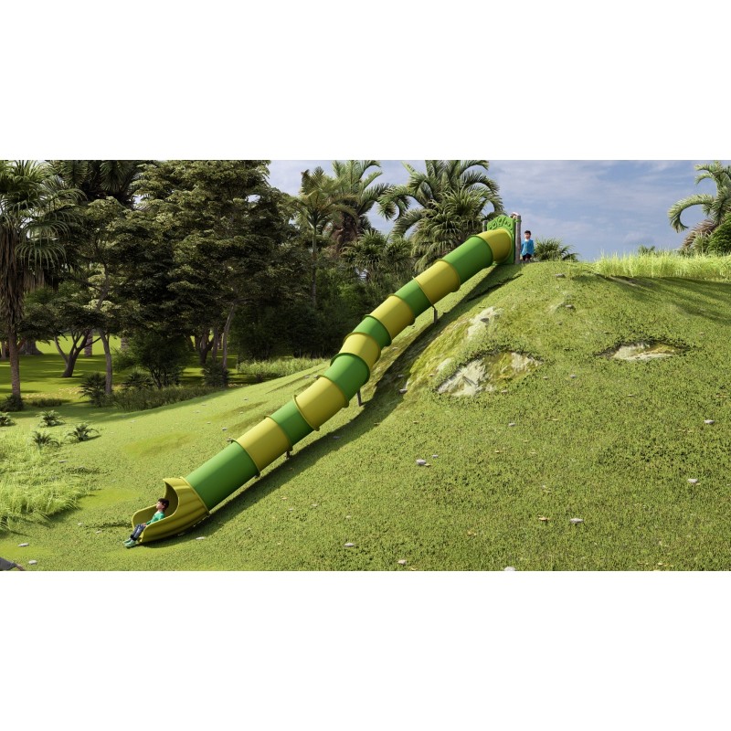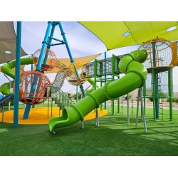 Toboggan tubulaire en Polyéthylène rotomoulé avec plateforme.