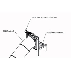 Plateforme en acier galvanisé avec plancher PEHD et toboggan tubulaire en PE.