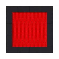 Trampoline de forme carrée destiné à être utilisé sur des aires de jeux à usage intensif. Le tapis de saut est fait de lamelles très résistantes d'une largeur de min. 37 mm, ayant la forme de la lettre "V" et renforcé par des nervures. Grâce à la forme unique des lamelles, les espaces entre les éléments de tapis ont été réduit à seulement 7 mm, ce qui empêche les petits objets, tels que les clés ou les téléphones portables, de tomber dans le trampoline. Le tapis est disponible en 8 coloris, il est également possible de faire des graphismes sur le tapis. La périphérie du trampoline est en SBR Rouge ou Noir en standard