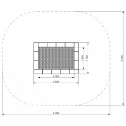 Trampoline de forme rectangulaire destiné à être utilisé sur des aires de jeux à usage intensif. Le tapis de saut est fait de lamelles très résistantes d'une largeur de min. 37 mm, ayant la forme de la lettre "V" et renforcé par des nervures. Grâce à la forme unique des lamelles, les espaces entre les éléments de tapis ont été réduit à seulement 7 mm, ce qui empêche les petits objets, tels que les clés ou les téléphones portables, de tomber dans le trampoline. Le tapis est disponible en 8 coloris, il est également possible de faire des graphismes sur le tapis. La périphérie du trampoline est en SBR Rouge ou Noir en standard