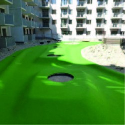 Trampoline enterré dans le sol avec zone de sécurité tout autour.